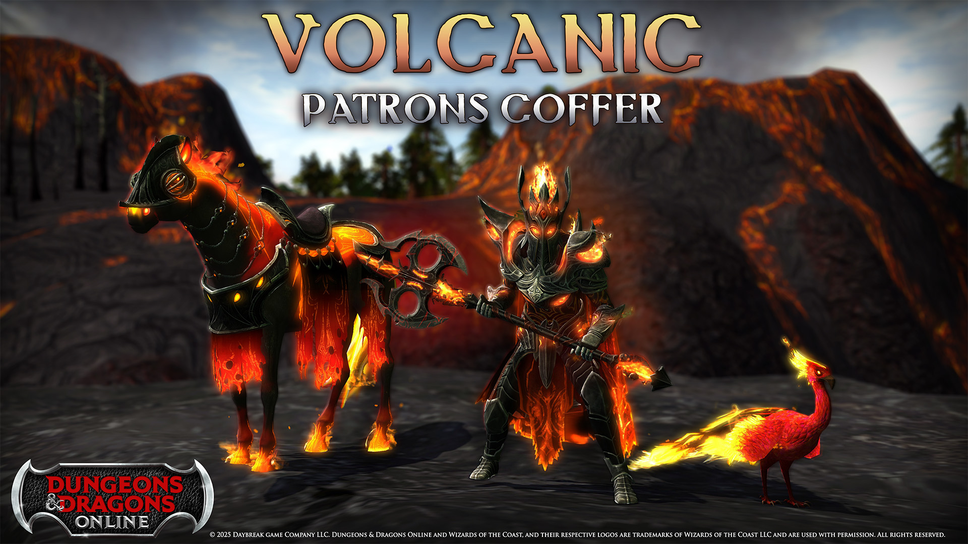 Contains everything in the Greater Volcanic Coffer and Volcanic Coffer as well as the Volcanic Steed and 20 slots of account bank storage for a total of 30! To gain access to the cosmetics and character bank storage, speak with Zeanna in the Eberron Hall of Heroes. The Creature Companion and Mount will be delivered directly to your pet/mount stable the next time you log into a character.