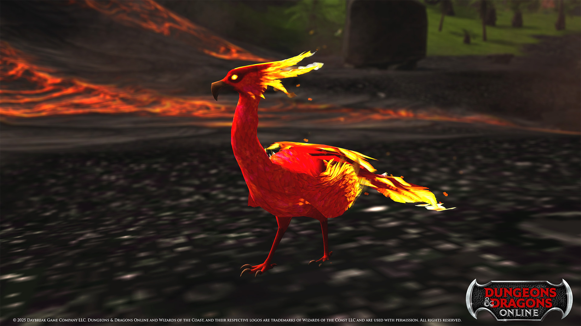 Contains the Volcanic Great Axe Cosmetic Weapon, Volcanic Glamered Weapon Aura, a Volcanic Phoenix Creature Companion, and 10 slots of account bank storage. To gain access to the cosmetics, speak with Zeanna in the Eberron Hall of Heroes. The Creature Companion will be delivered directly to your pet stable the next time you log into a character.