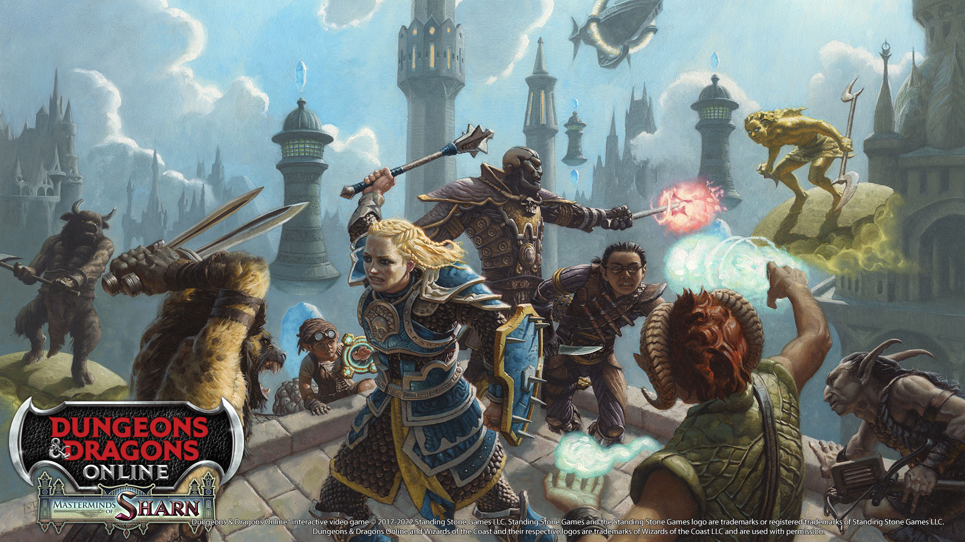 Masterminds of Sharn expansion takes you to the heart of Eberron. Explore the City of Towers, uncover nefarious plots, and discover what lies beneath! Contains 9 story quests, 7 explorer quests, 2 raids, and a landscape. Level 15 (Heroic) and 32 (Epic).